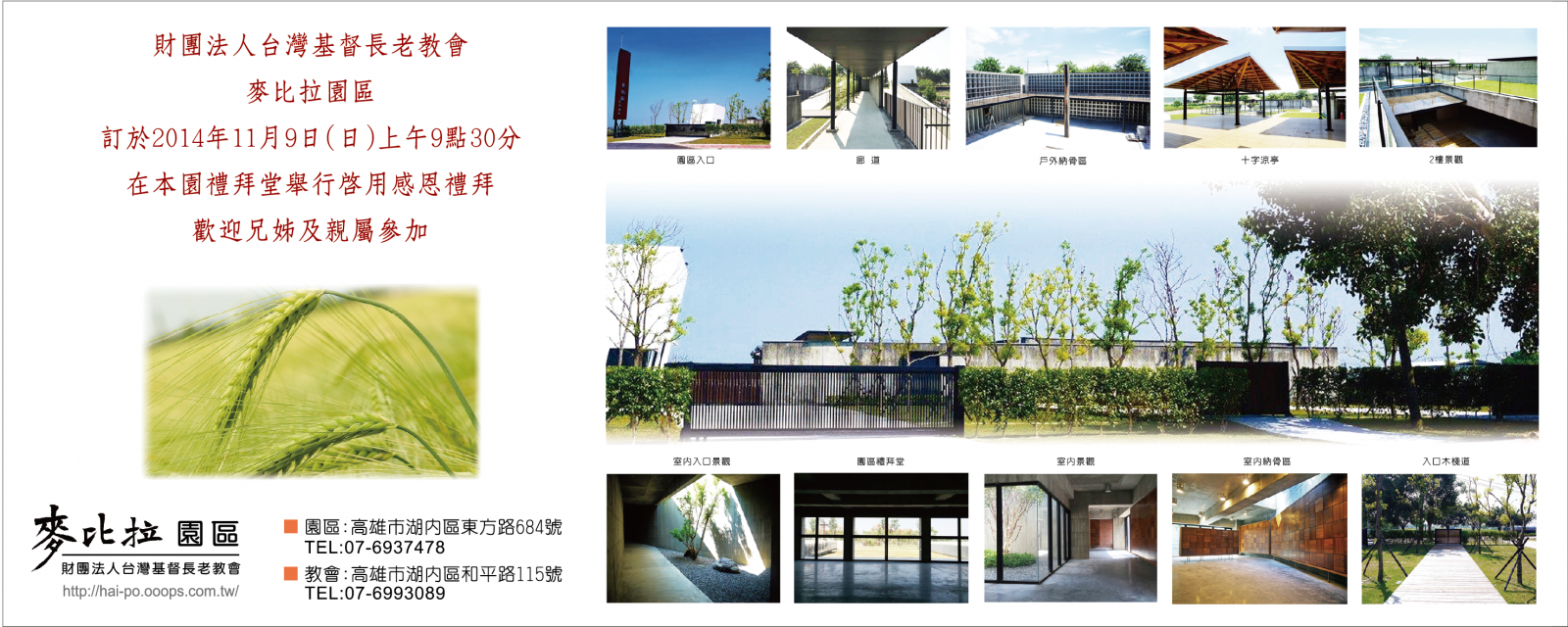 82943高雄市湖內區和平路115號 E-mail:hai-po@mail.ooops.com.tw 教會電話:07-6993089 Fax:07-6992750